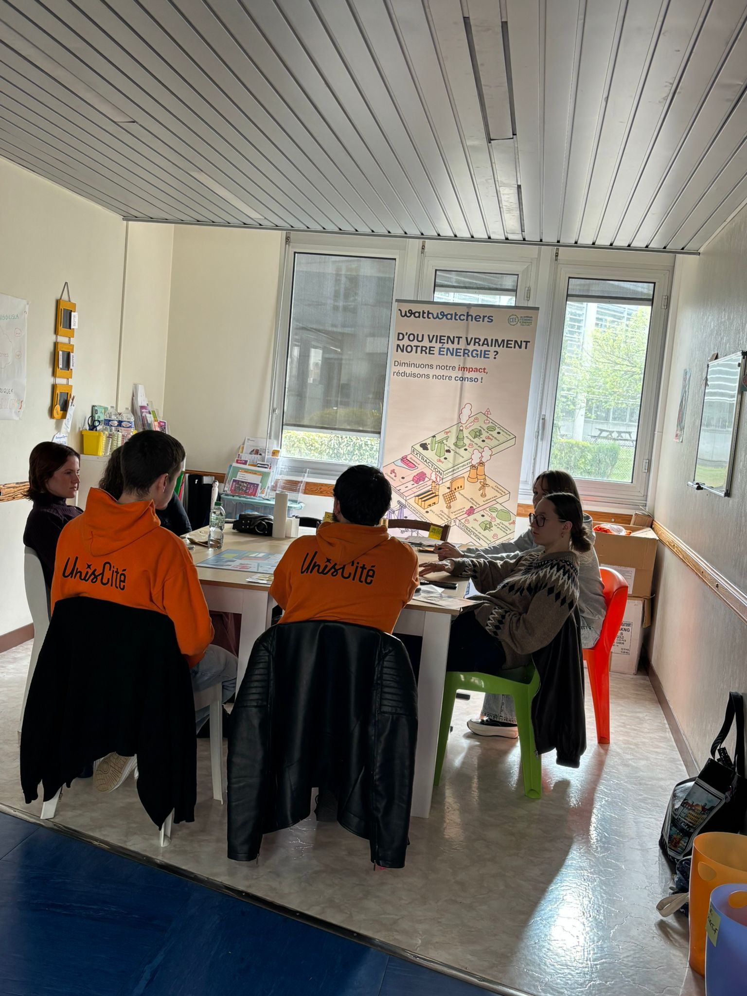 - Au local d’Unis-Cité : sensibilisation de toute la promotion de volontaires en service civique avec des ateliers sur la mode responsable, l’alimentation durable, calcul de l’impact carbone et la précarité énergétique.